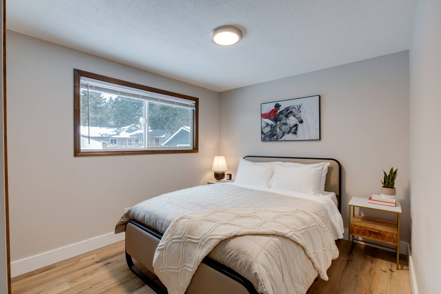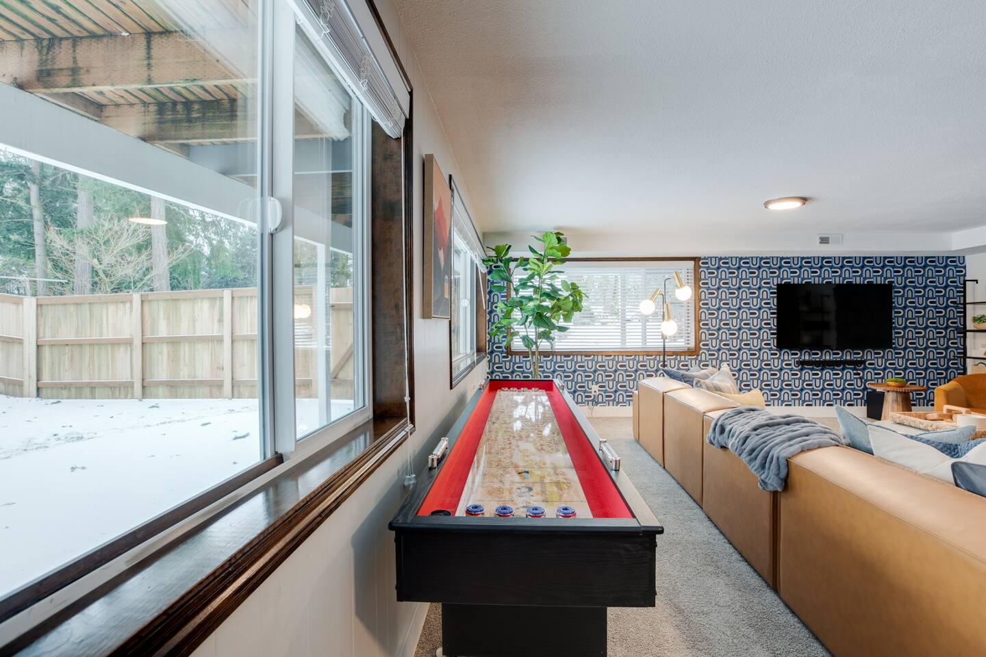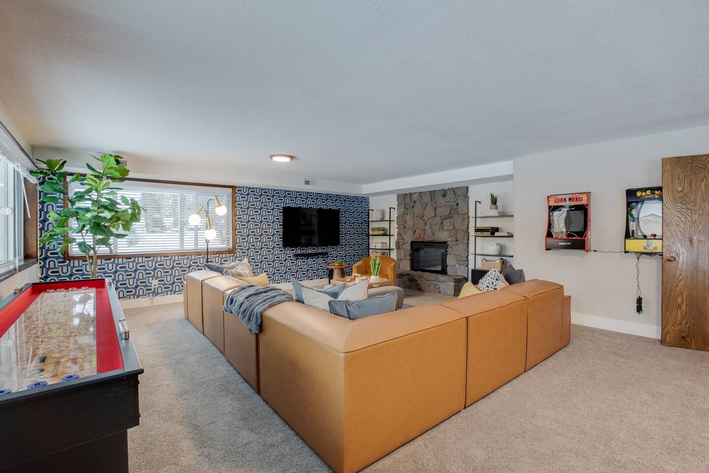 Bring the whole family to this spacious 6 bedroom home where a 70's vibe meets modern luxury. This remodeled home has beds for 14 people. 3,600 square feet of living space includes a fully-stocked kitchen, sauna, hot tub, and game room, it's sure to have something to cater to everyone! The Evergreen Retreat is your family's home away from home while visiting the Pacific Northwest.