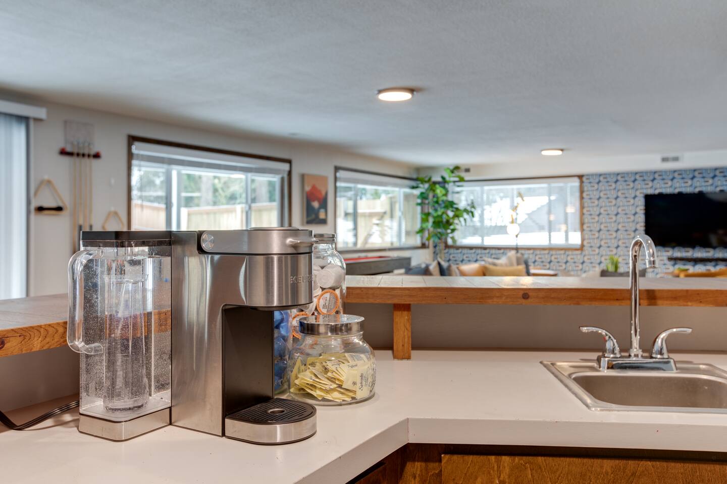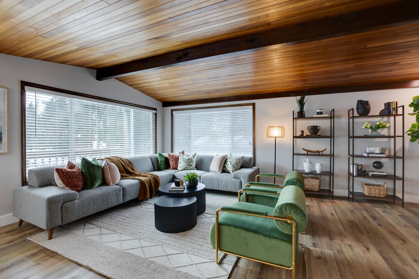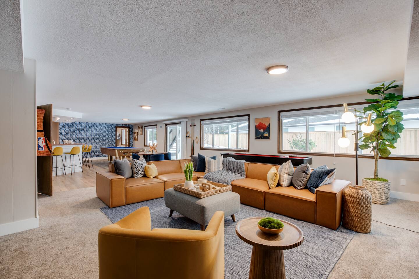 Bring the whole family to this spacious 6 bedroom home where a 70's vibe meets modern luxury. This remodeled home has beds for 14 people. 3,600 square feet of living space includes a fully-stocked kitchen, sauna, hot tub, and game room, it's sure to have something to cater to everyone! The Evergreen Retreat is your family's home away from home while visiting the Pacific Northwest.
